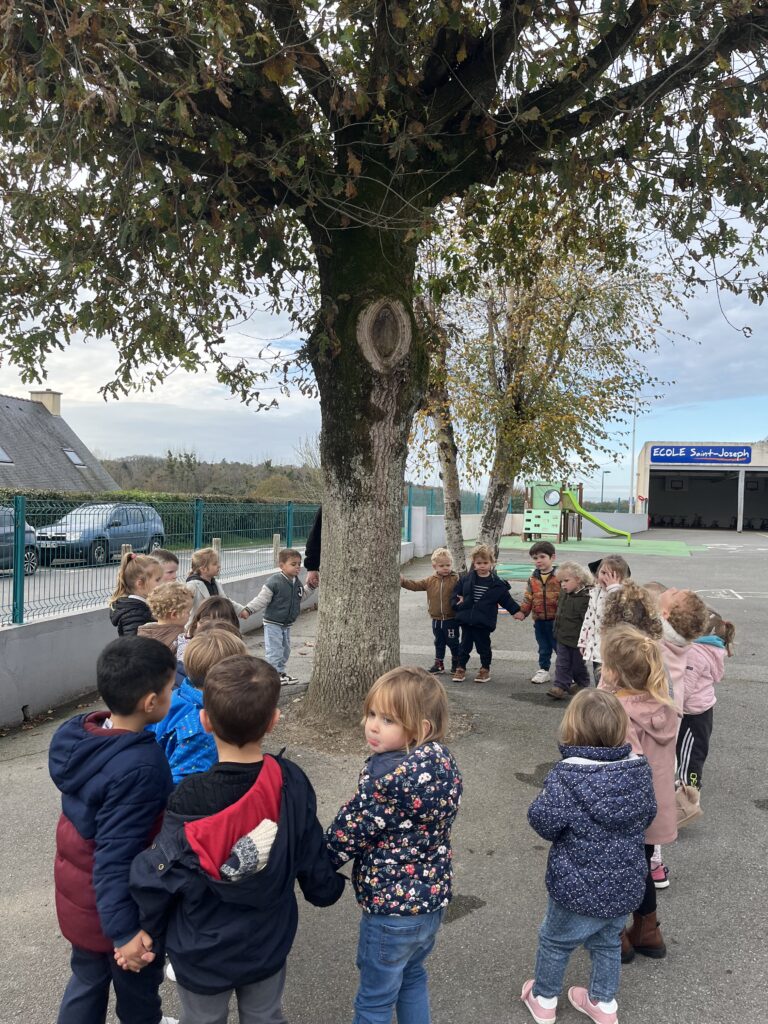 Nous avons découvert l’album : « Le petit gland » en classe. Cela nous a permis de travailler autour des arbres. Nous connaissons les différentes parties d’un arbre. Nous avons aussi appris certains noms d’arbres et leur fruit (le pommier donne des pommes, le poirier des poires, le noyer : des noix… le chêne : des glands…