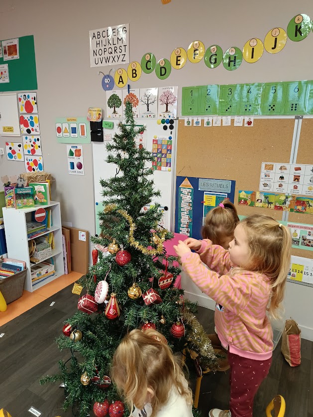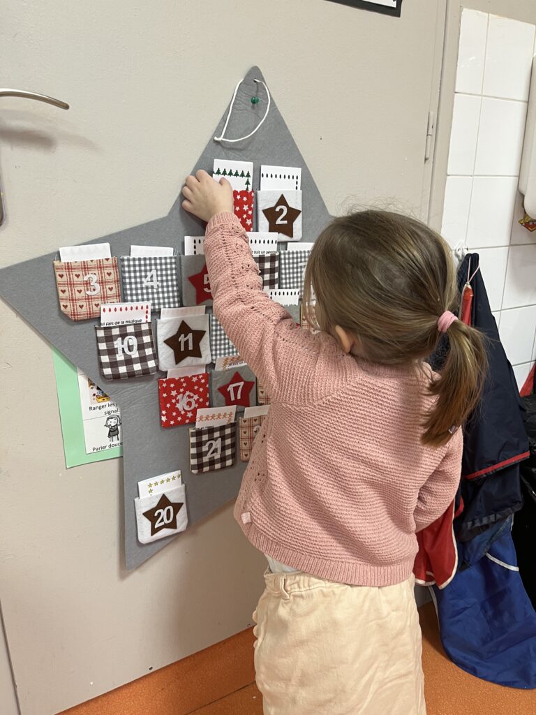 Le 1er Décembre, nous avons découvert un très joli calendrier de l’Avent. Chaque jour, nous découvrons un petit message : des devinettes, des chasses aux trésors pour retrouver une décoration de noël pour décorer la classe ou le sapin, ou encore la photocopie d’un album de noël (que la maîtresse lit dans la journée.