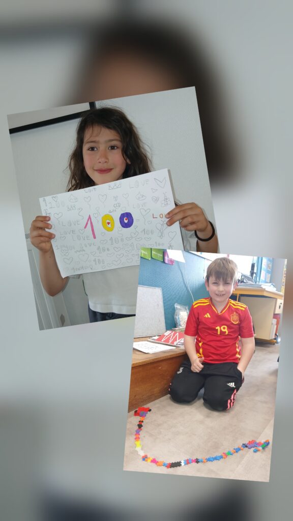 Les CP fêtent le 100 ème jour d’école. Post author:enseignant Post published:13 avril 2026 Post category:Non classé Mardi 7 avril, les CP ont réalisé des œuvres avec 100 pièces ( plus plus, kaplas, puzzles dessin, ) pour marquer ce 100 ème jour d’école. Bravo à tous pour vos créations. Vous devriez également aimer Alice au pays des merveilles… 27 novembre 2025 Ecole dehors CP CE1 15 novembre 2022 Projet EMILE 3 octobre 2022