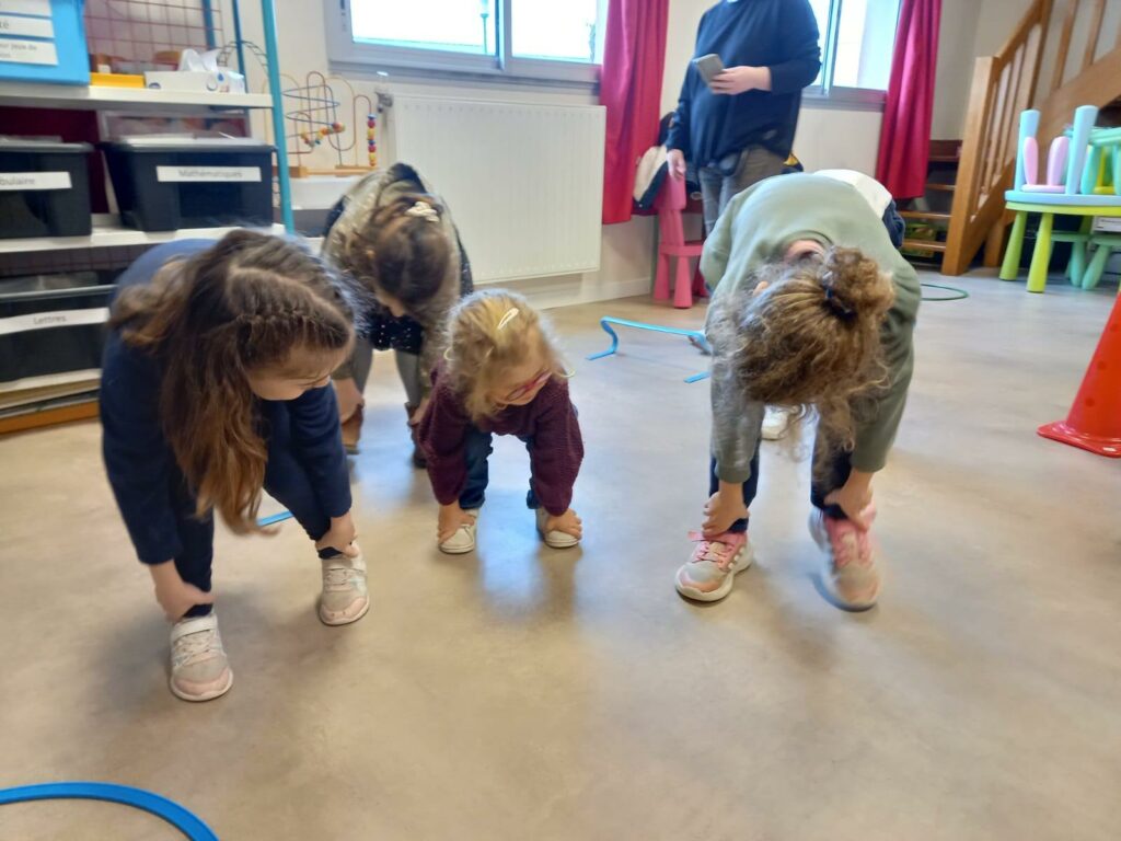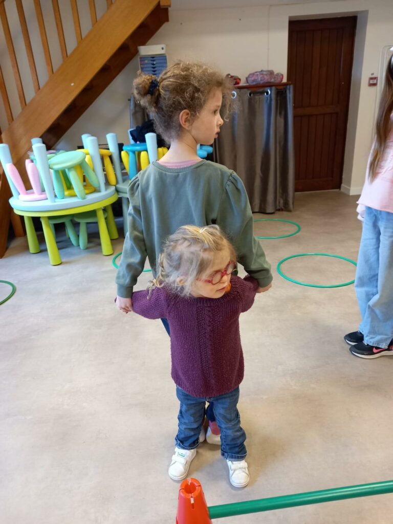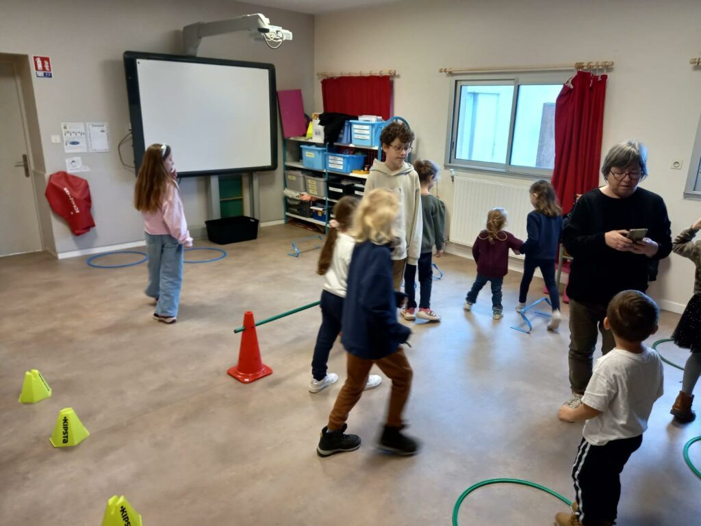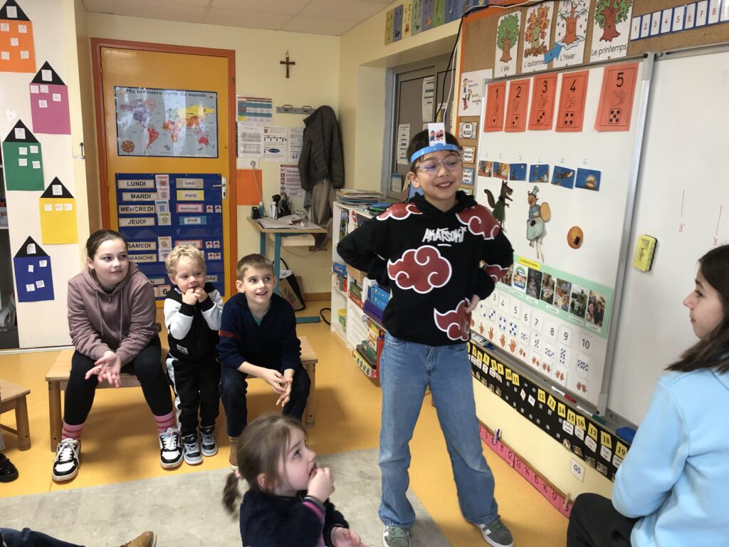 Le vendredi des vacances de février, les enfants de l’école se sont mélangés pour constituer des équipes et jouer ensemble à des jeux sur le thème des contes : Le jeu de motricité : Qui a peur du loup ?, le jeu de langage sur les contes « devine-tête », apprentissage de la chanson « les 3 petits cochons »…