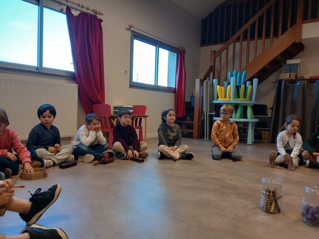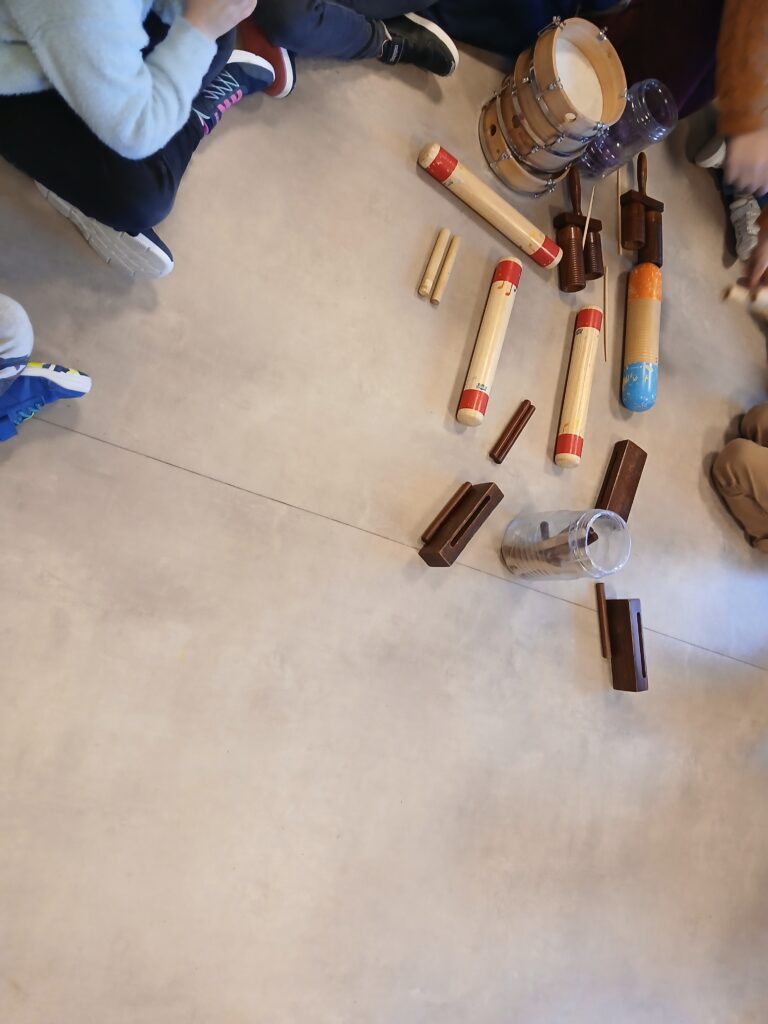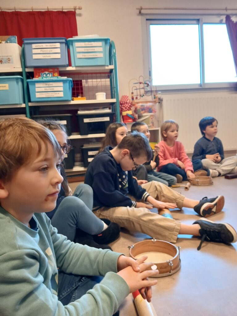 Les séances de musique avec Emmanuelle sont vraiment bien. Durant les dernières séances, les élèves ont pu découvrir plusieurs instruments ( bâton de pluie, tambourin, claves ) et les expérimenter. Ils ont travaillé sur les bruits de la forêt : l’ambiance de la forêt a été créée et enregistrée. Bravo pour votre travail les enfants !