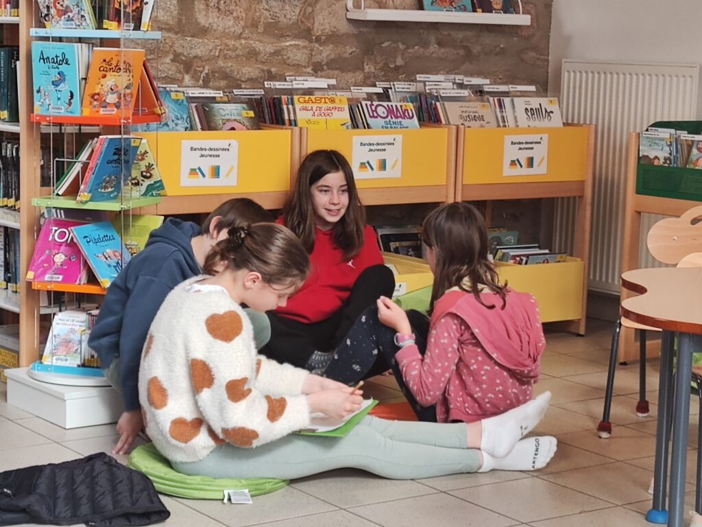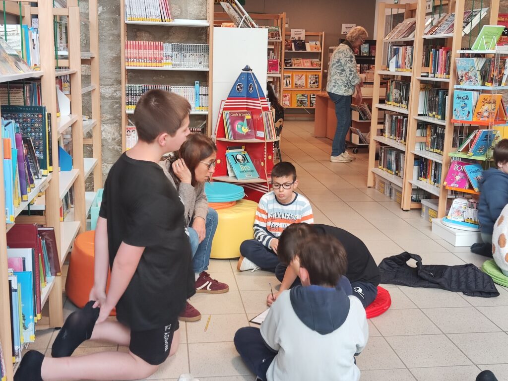 Mars, le mois du printemps des poètes dans les médiathèques. Nous nous sommes essayé aux calligrammes comme Guillaume Apollinaire… Des réalisations qui sont encore a peaufiner ! Après l’écriture,chaque groupe a pu lire sa réalisation aux autres camarades.