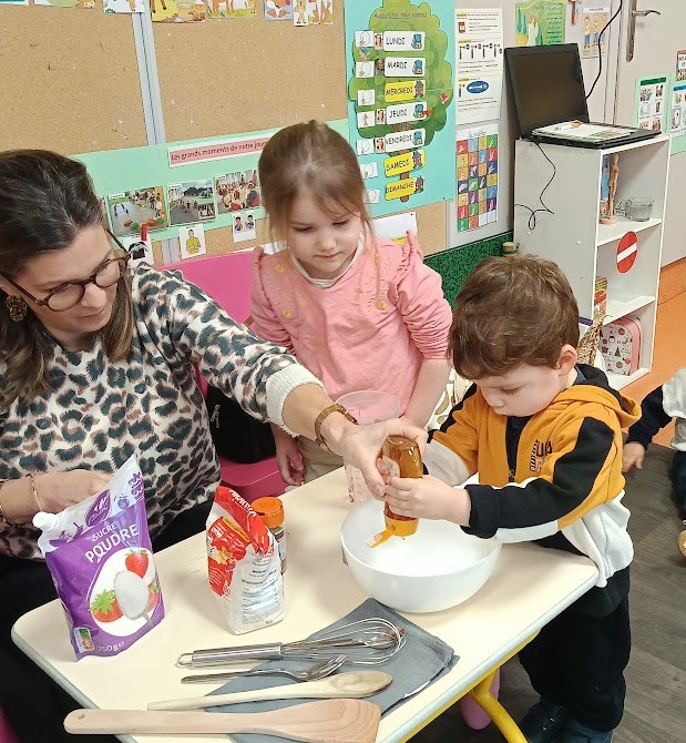 Nous avons travaillé autour du vocabulaire de l’histoire, des personnages, de la chronologie de l’histoire … Nous avons lu différentes versions de ce conte et repéré les différences entre les histoires … Et nous avons à notre tout réaliser la recette du pain d’épice en classe.