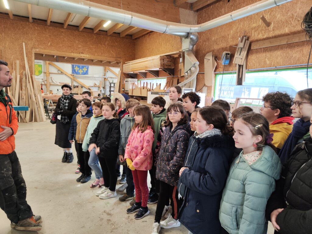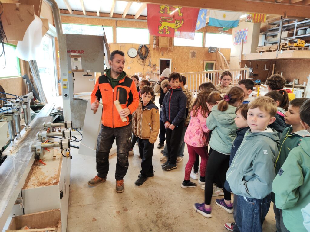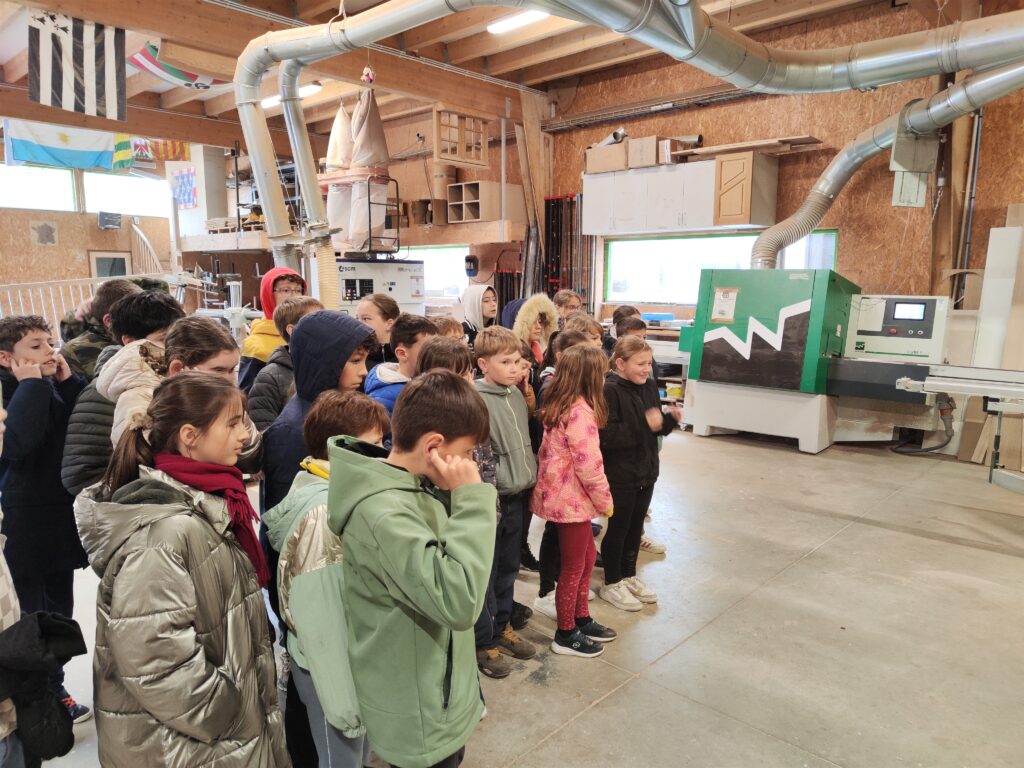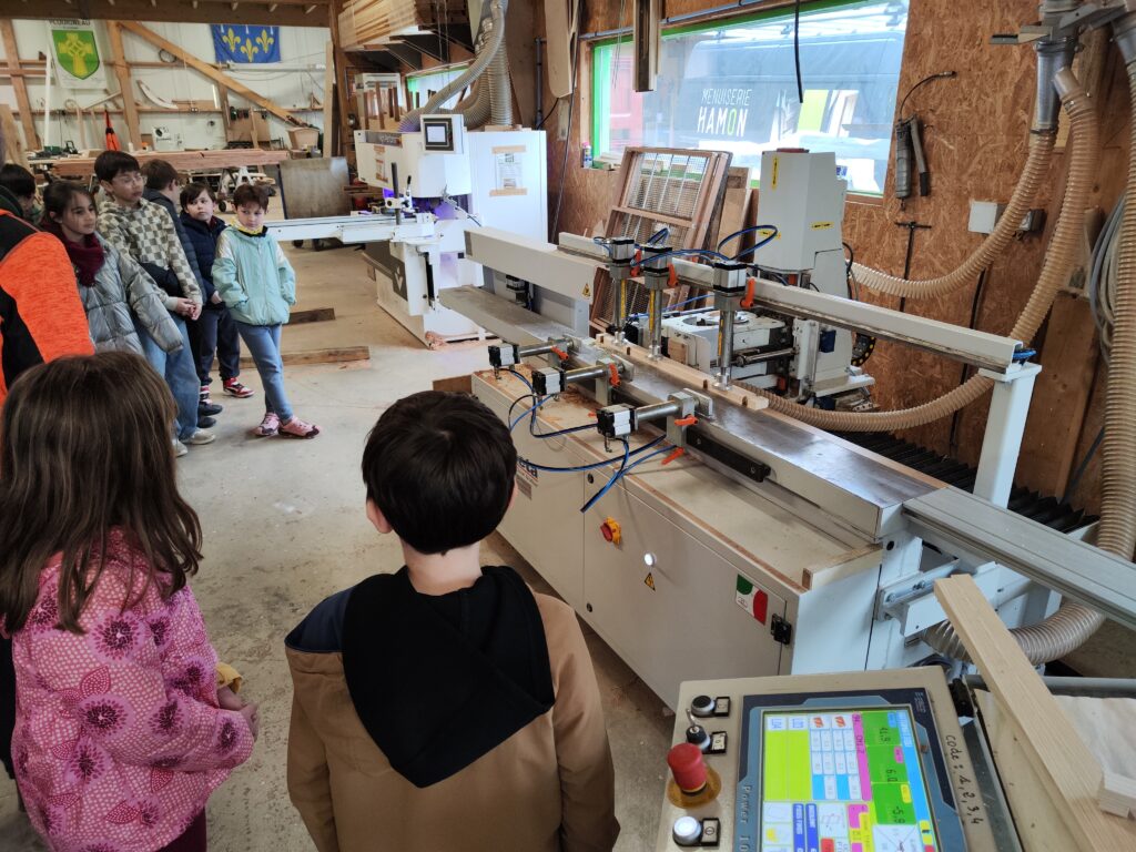 Aujourd’hui les élèves de CM se sont rendus à la menuiserie Hamon sur la zone de Kerboulard. Nous avons vu les machines, nous avons même pu les essayer. Nous avons découvert les différents métiers liés au bois: sylviculteur, charpentier, menuisier, ébéniste, tonnelier…C’était très enrichissant, certains élèves ont déjà postulé pour un stage de 3 ème. Un grand merci à Mr Le Thiec qui nous a offert cet après midi, termine par un bon goûter !